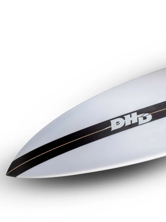 ..The special feature of this Sandman DHD board is the long tip, which has been lengthened by 2 centimeters to improve the paddling power. This design allows for easier paddling without losing the characteristic DHD performance. The combination of the pin tail and round tail offers stability and a smooth ride on the waves. The slight single to double concave with the flat entry rocker generates speed so you can increase your performance.