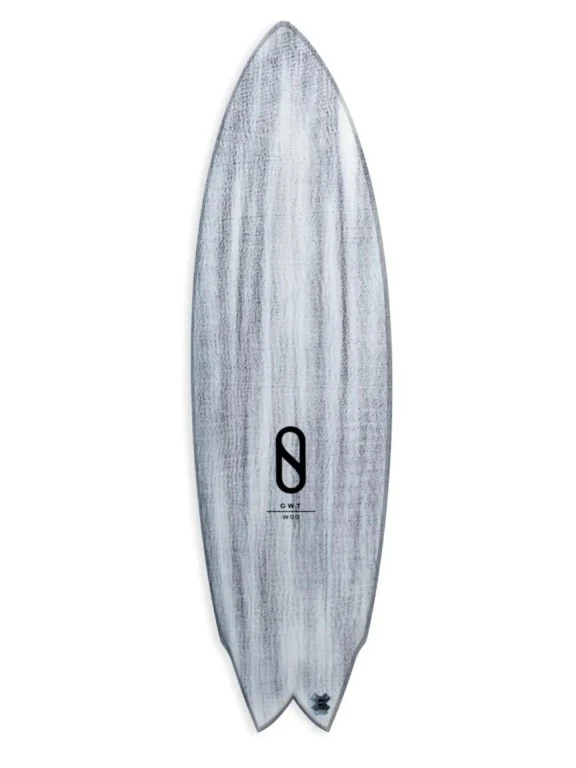 The Great White concept was an idea Kelly had. Over dinner one evening, he showed me a photo of a Great White shark and asked if I could incorporate the curves of an apex predator into a board design. A bit taken aback, I listened to his idea of turning this into a performance twin. With the photo next to me, I worked on the outline taking the shark’s curves and flow, balancing it visually with some dimensions I had in mind. Checking back with Kelly we moved the wing around and came up with a good balance. With the width, we decided on I could get the proper lift needed with simple bottom contours. I decided to use my most performance shortboard rocker that’s evolved over 20+ years. Outline, rocker, bottom contours in balance. I’d love to give a romantic story about how we spent years on a design, but the first shape was magic… It’s a fast paddling short board with 2 fins! Should be ridden about 2 inches shorter than your everyday ‘go to” board. It fits in the pocket, drives through barrels, and makes hyper speed on rail. Low drag without a rear fin or minimizing it with a smaller rear fin is another gear. Not a huge transition from a normal short board to this twin.